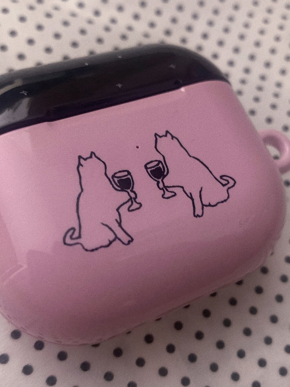 별빛 아래에서 와인을 마시는 두 고양이의 모습이 담긴 유광 하드 에어팟케이스 'Santé!'. 누군가와 짠! 하고 싶은 순간을 떠올리는 것만으로도 우리는 행복해지곤 합니다.