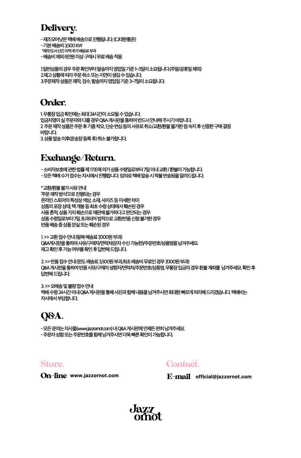 - 1:1 오더메이드 방식으로 제작 진행 되며, 따라서 제작,검수,배송까지 2~5일 가량의 기간이 소요될 수 있습니다.