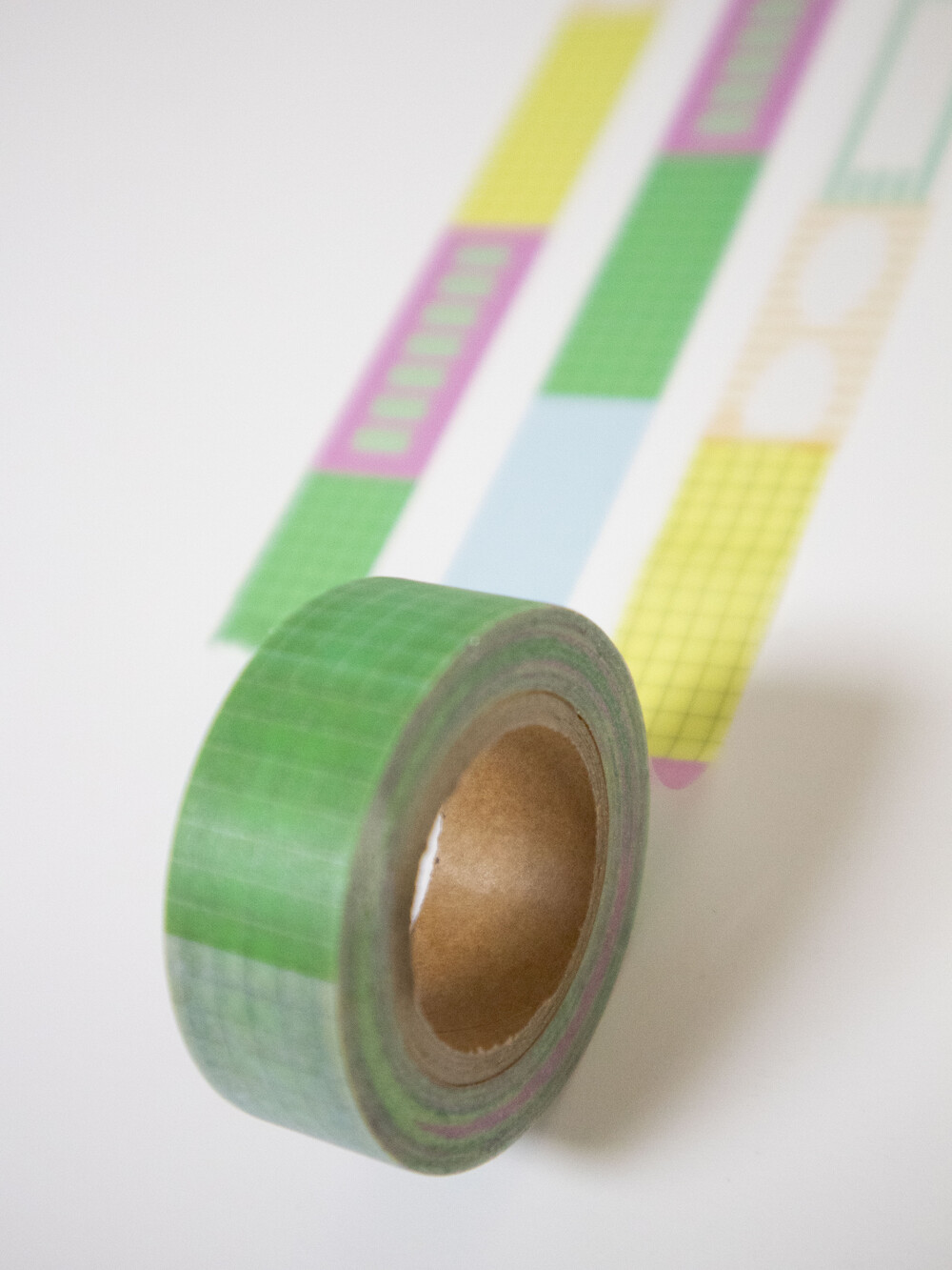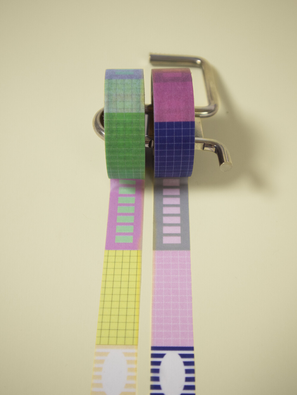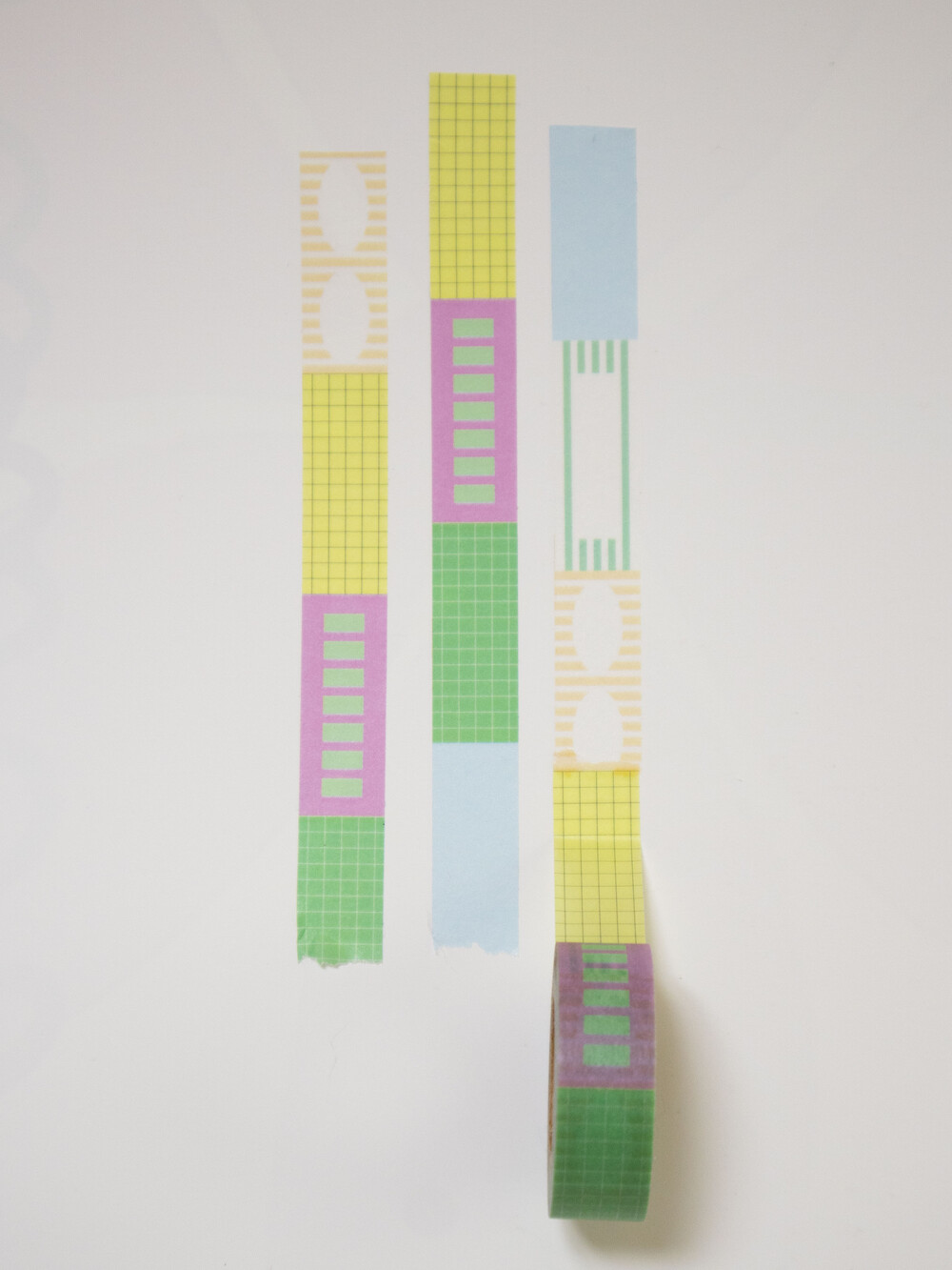과감한 색상과 도형을 사용한 미장센이라는 이름의 두 가지 마스킹테이프. 프레임을 만들거나 라벨링으로 잘라 포인트를 주기에 좋습니다.