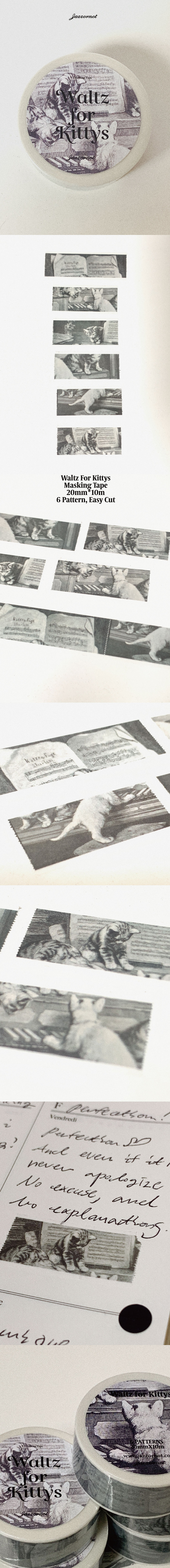 피아노를 둘러싼 귀여운 고양이들의 여섯가지 패턴이 반복되는 마스킹테이프입니다. 패턴 사이에 절취선이 있어 쉽게 뜯어 사용할 수 있습니다.