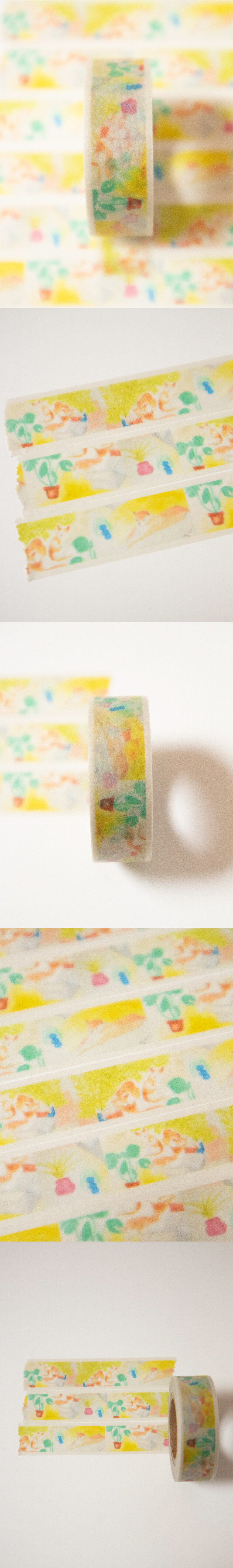 햇살 좋은 날, 마당에서 뒹굴거리는 네 마리 고양이 가족의 풍경을 그려 담아낸 마스킹테이프입니다. 가끔은 이런 풍경을 바라보거나 떠올리는 것만으로도 마음이 편안해집니다. *배경 색이 하얀색이 아닌 옅은 회색입니다.