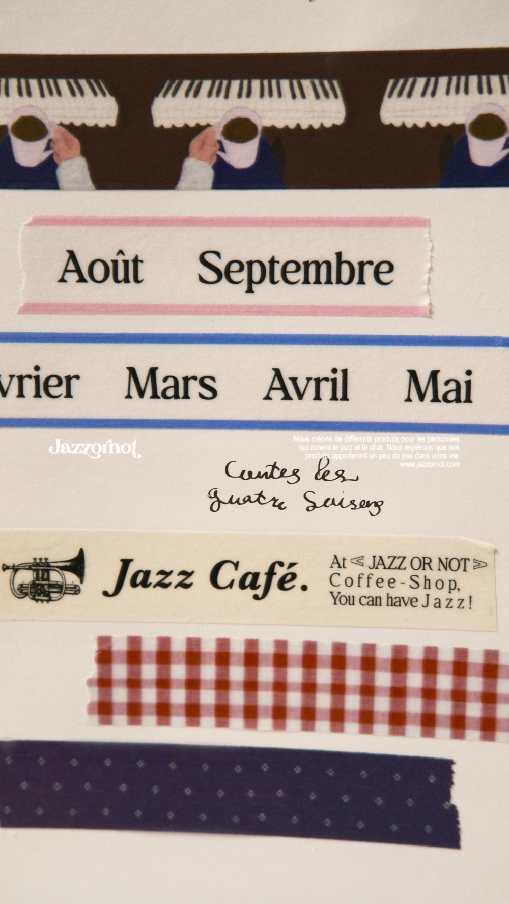 재즈오어낫의 이번 시즌 대표 패턴 두가지로 제작된 마스킹테이프. 빈티지한 느낌의 French Red,단정하고 사랑스러운 Bleu Minuit를 만나보세요.