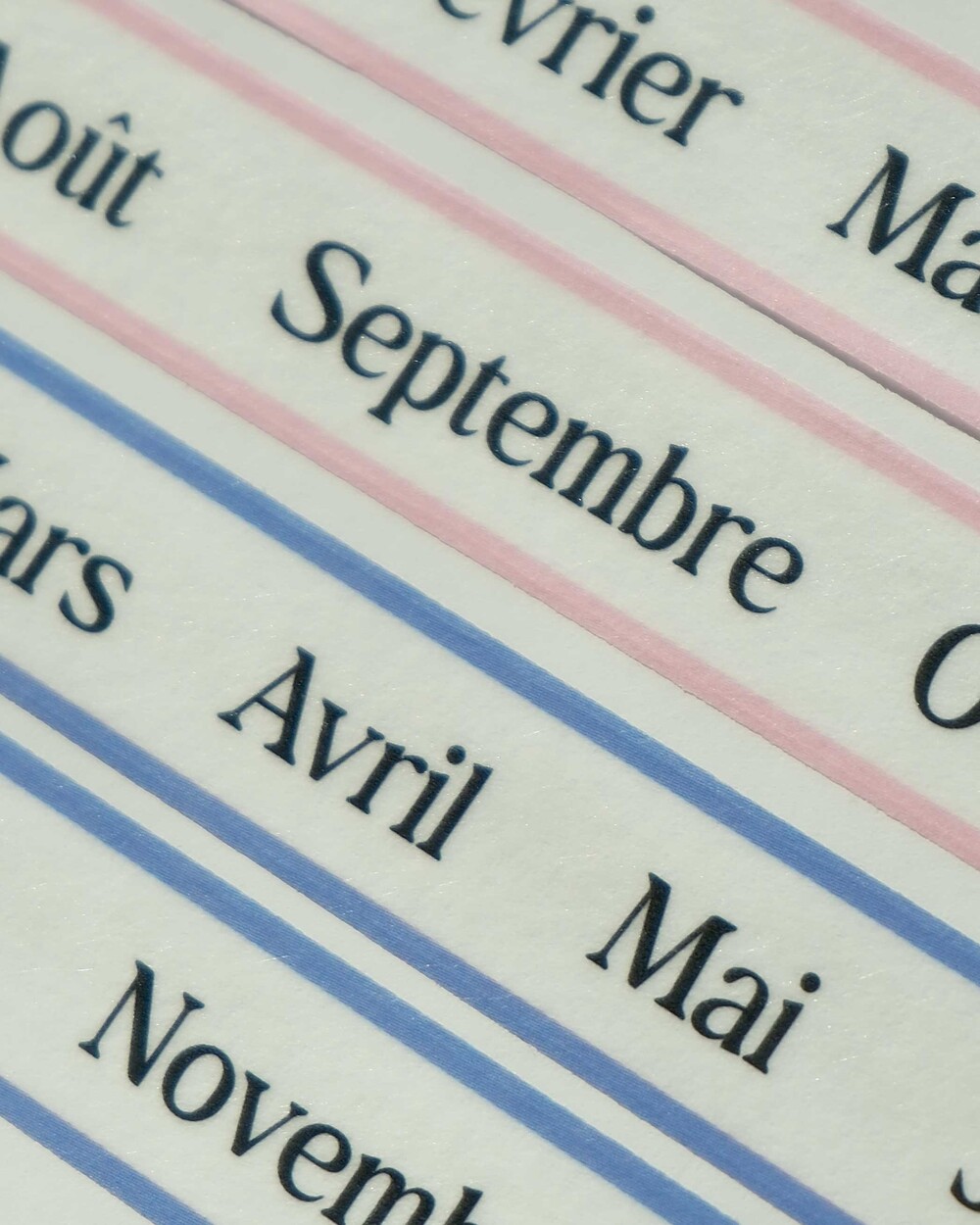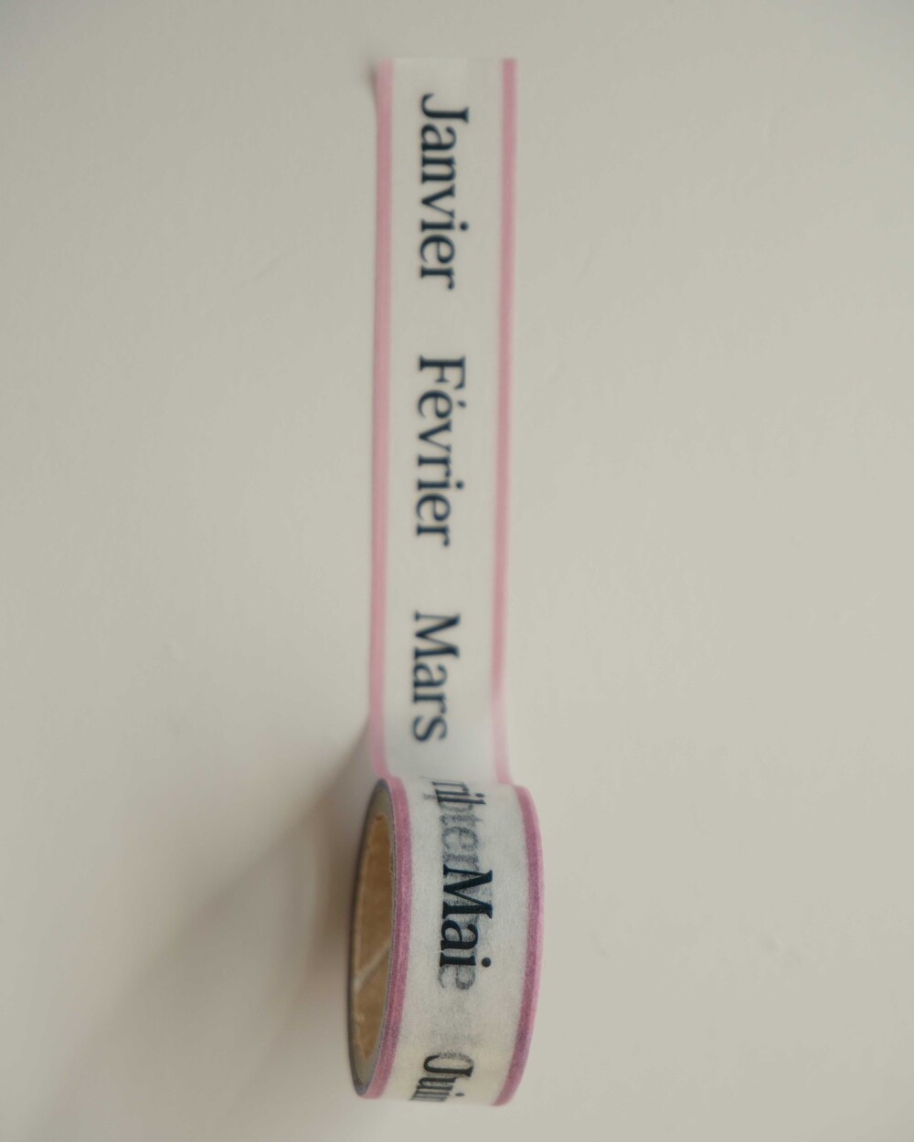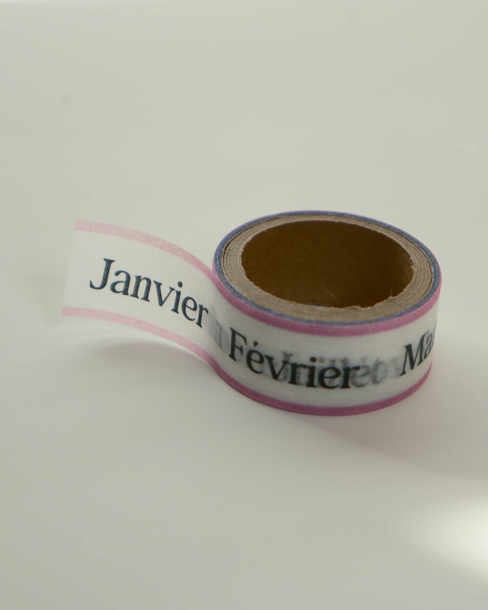 프랑스어로 1월부터 12월까지 적힌 마스킹테이프를 소개합니다. 프랑스어로 적힌 것들은 워낙 찾기가 힘들어서 직접 만들었어요. 월 순서대로 나열되어 있기 때문에 프랑스어를 잘 몰라도 무리 없이 사용하실 수 있어요.