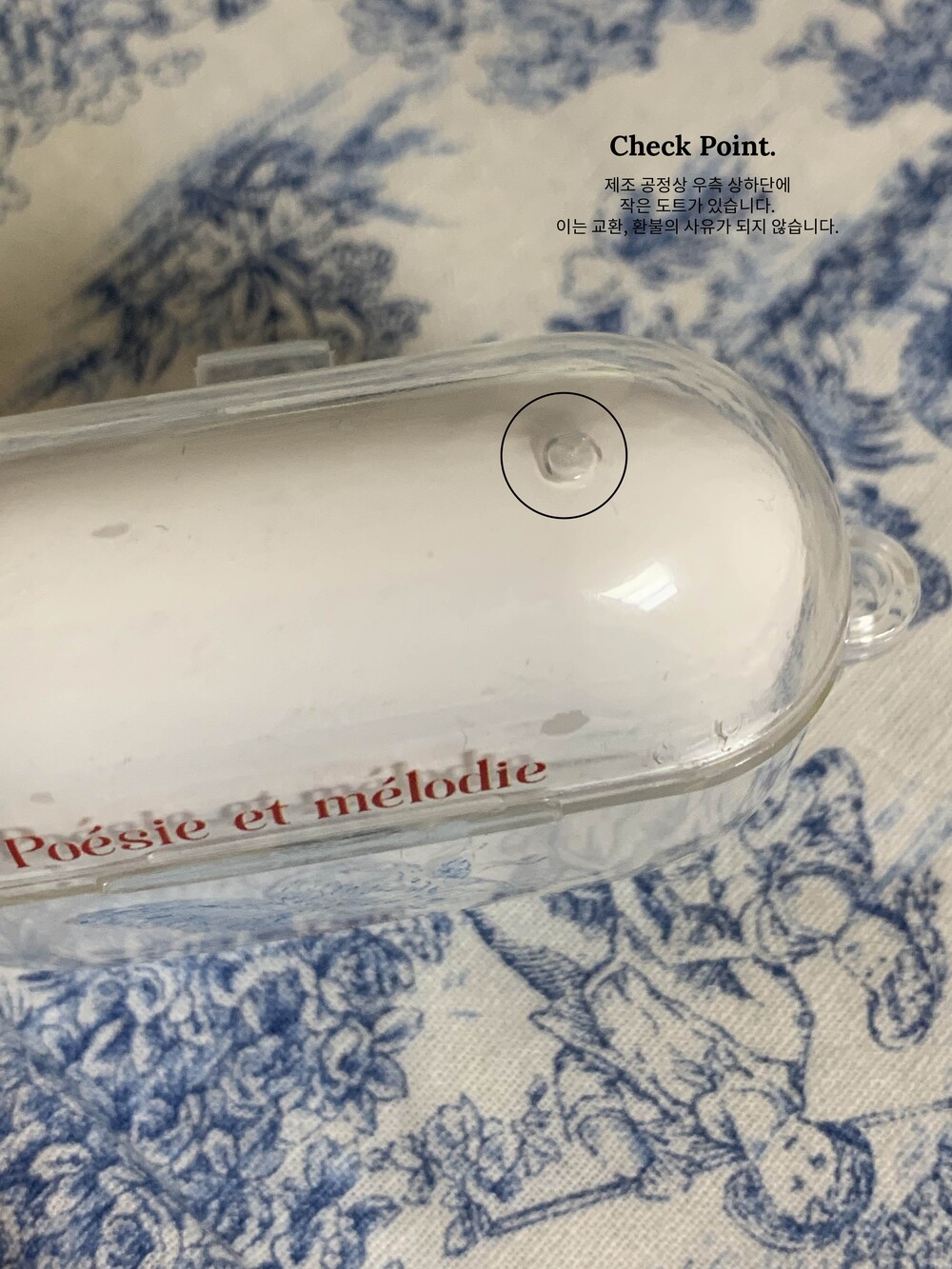 4. 착용 전 에어팟과 케이스 내부를 부드러운 천으로 닦아주셔서 이물질을 제거해 주시면 유막현상을 최소화하실 수 있습니다.