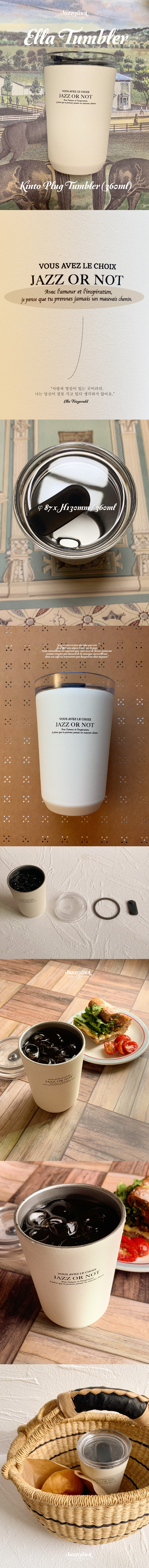 재즈오어낫의 'Ella Tumbler'는 견고한 만듦새와 고급스러운 디자인으로 세계적인 사랑을 받고 있는 킨토(Kinto)사의 투고 플러그 텀블러에, 재즈의 여왕 Ella Fitzgerald(엘라 피츠제럴드)가 전하는 메시지를 담아낸 오브제입니다.