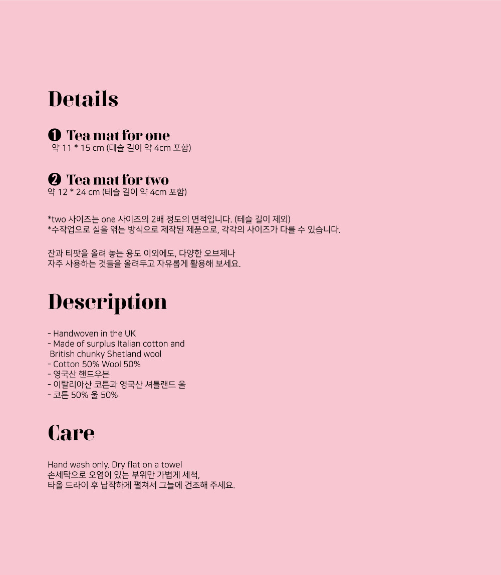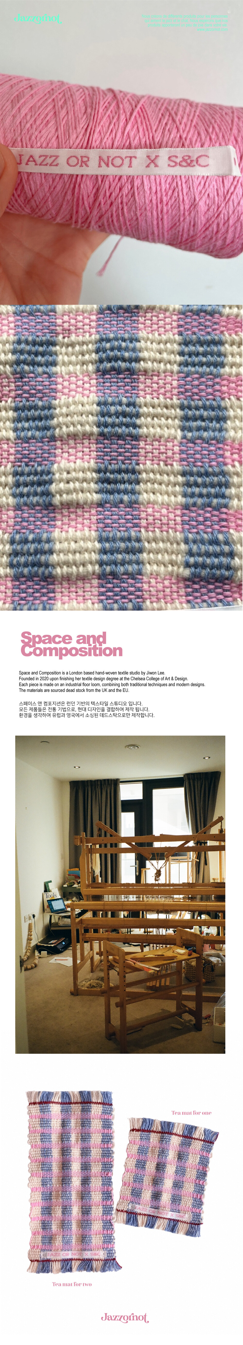 재즈오어낫과 런던 기반의 텍스타일 스튜디오 SPACE AND COMPOSITION(스페이스 앤 컴포지션)이 협업하여 제작한 두 가지 사이즈의 티 매트입니다.
