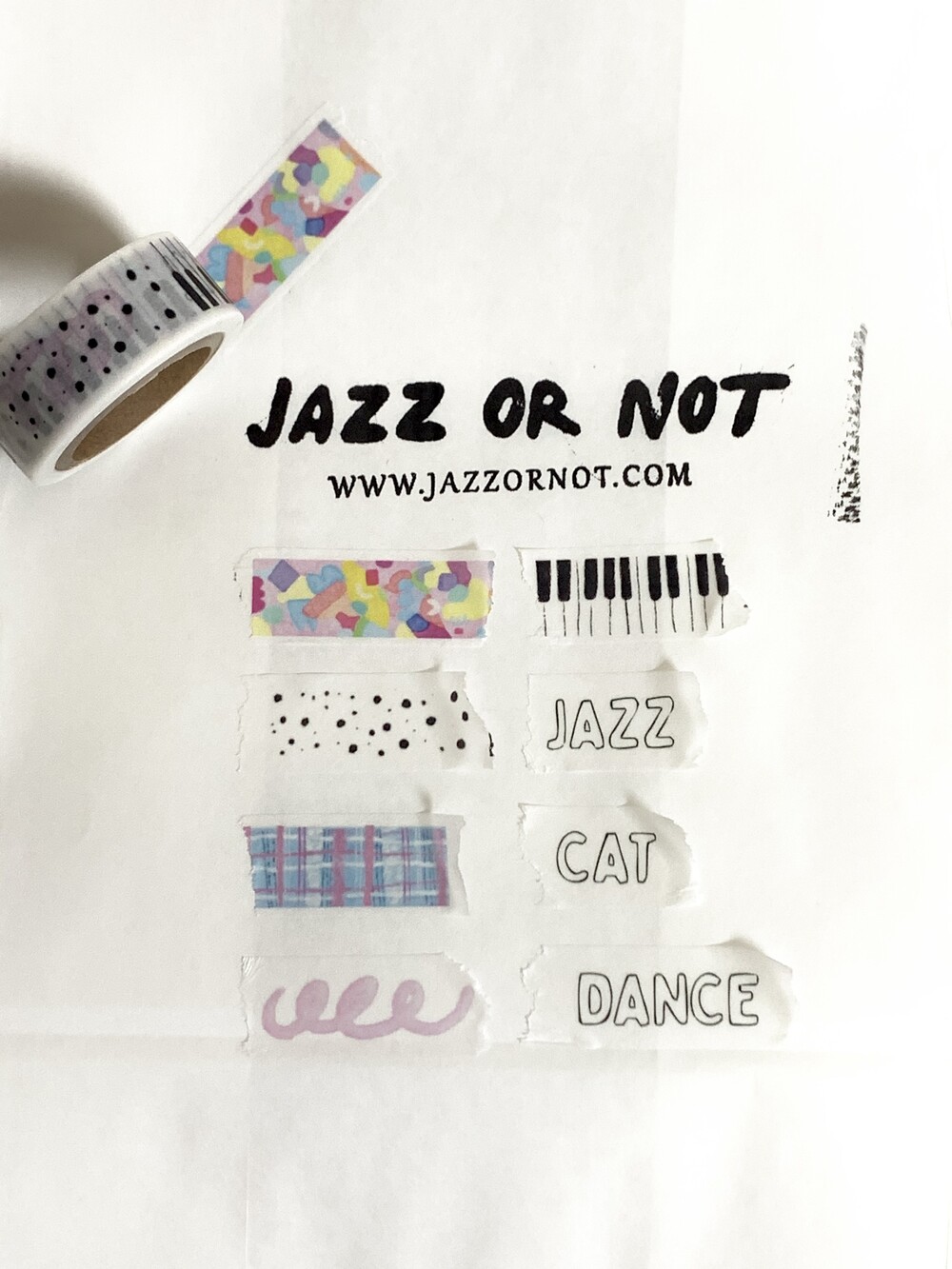다이어리 속, 편지 끝, 벽에 메모를 붙일 때 일상 속 다양한 곳에서 유용하게 사용할 수 있는 8가지 귀여운 패턴의 마스킹테이프입니다. 8가지 패턴이 반복되어 보다 다양하게 활용할 수 있습니다. 소소한 귀여움으로 분위기를 바꿔보고 싶다면, 주변에 재즈, 고양이, 댄스를 좋아하는 사람이 있다면, 귀여운 선물로도 추천드립니다.