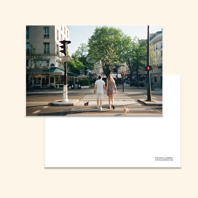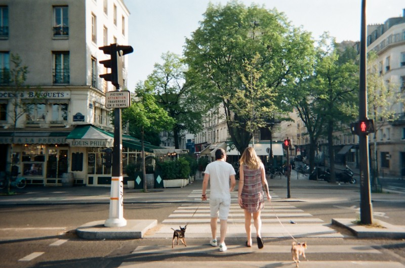 반짝이는 파리의 아침, 강아지들과 함께 산책하는 파리지앵의 모습이 따듯한 무드를 선사합니다.