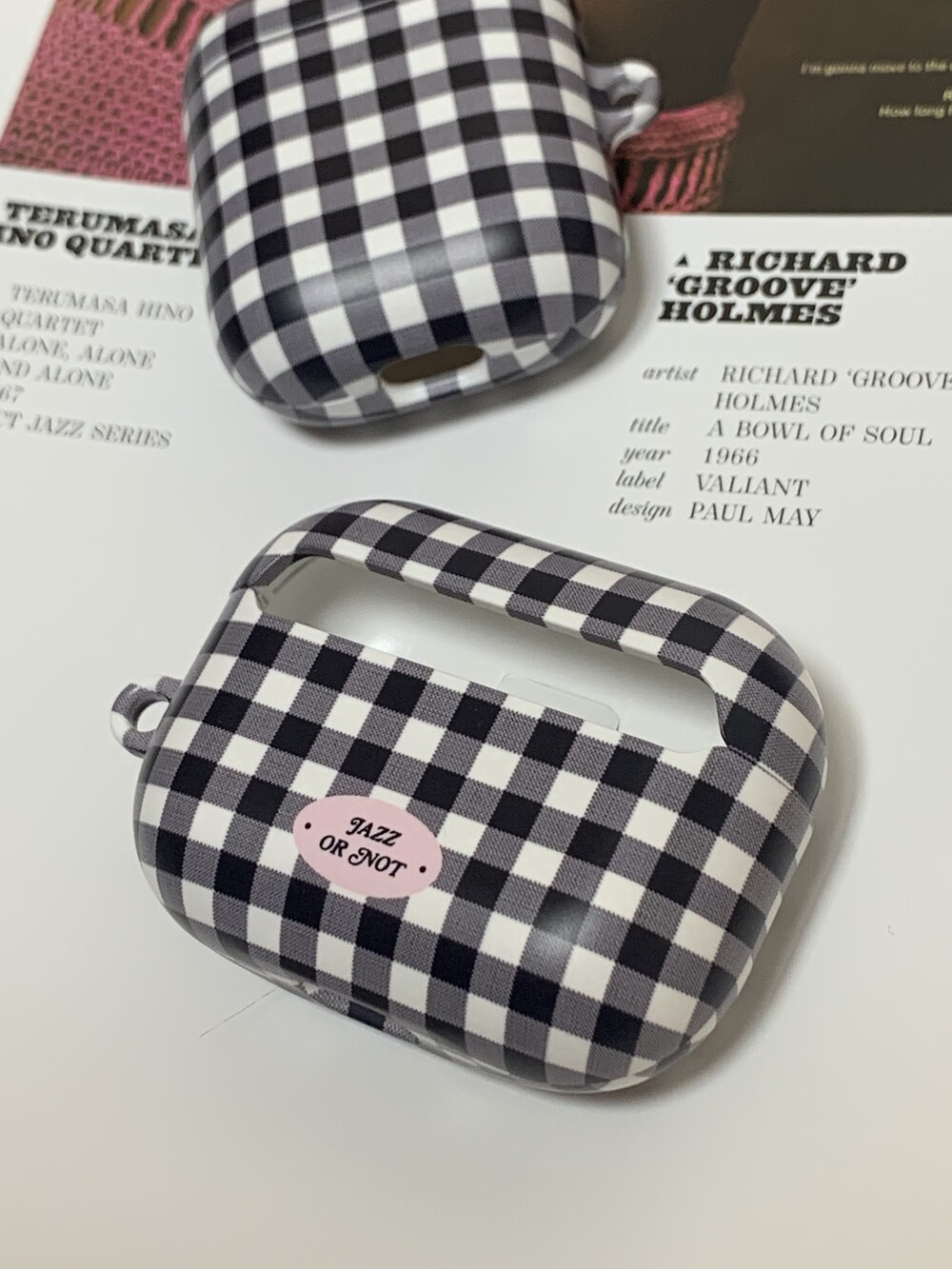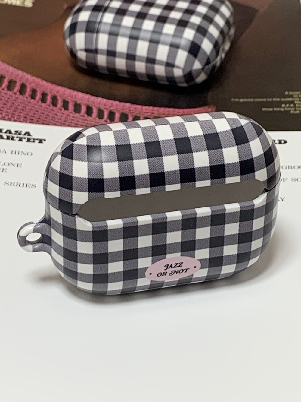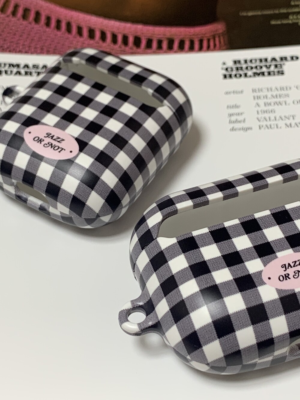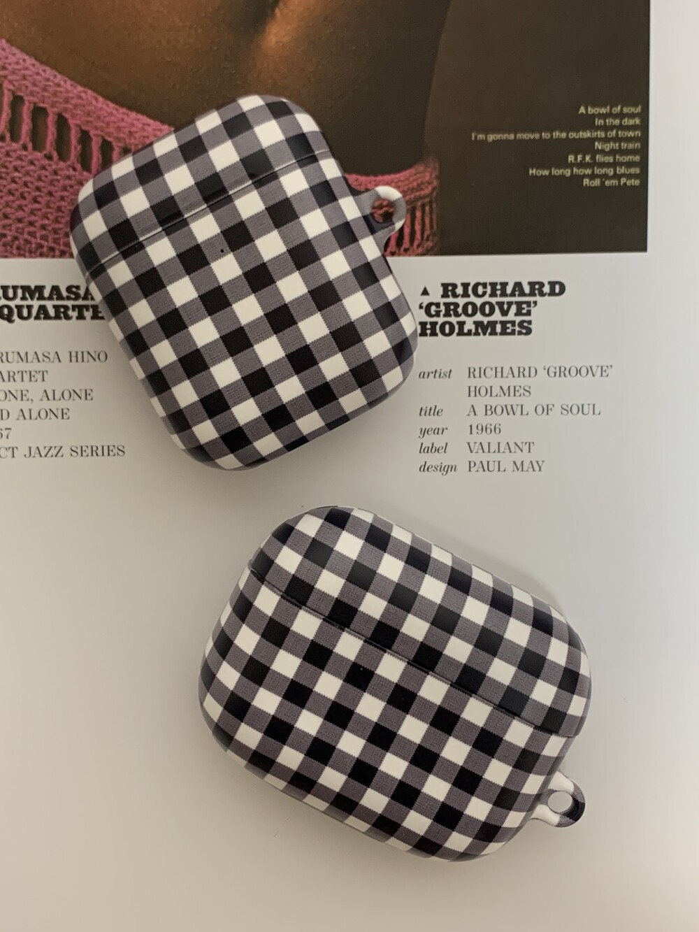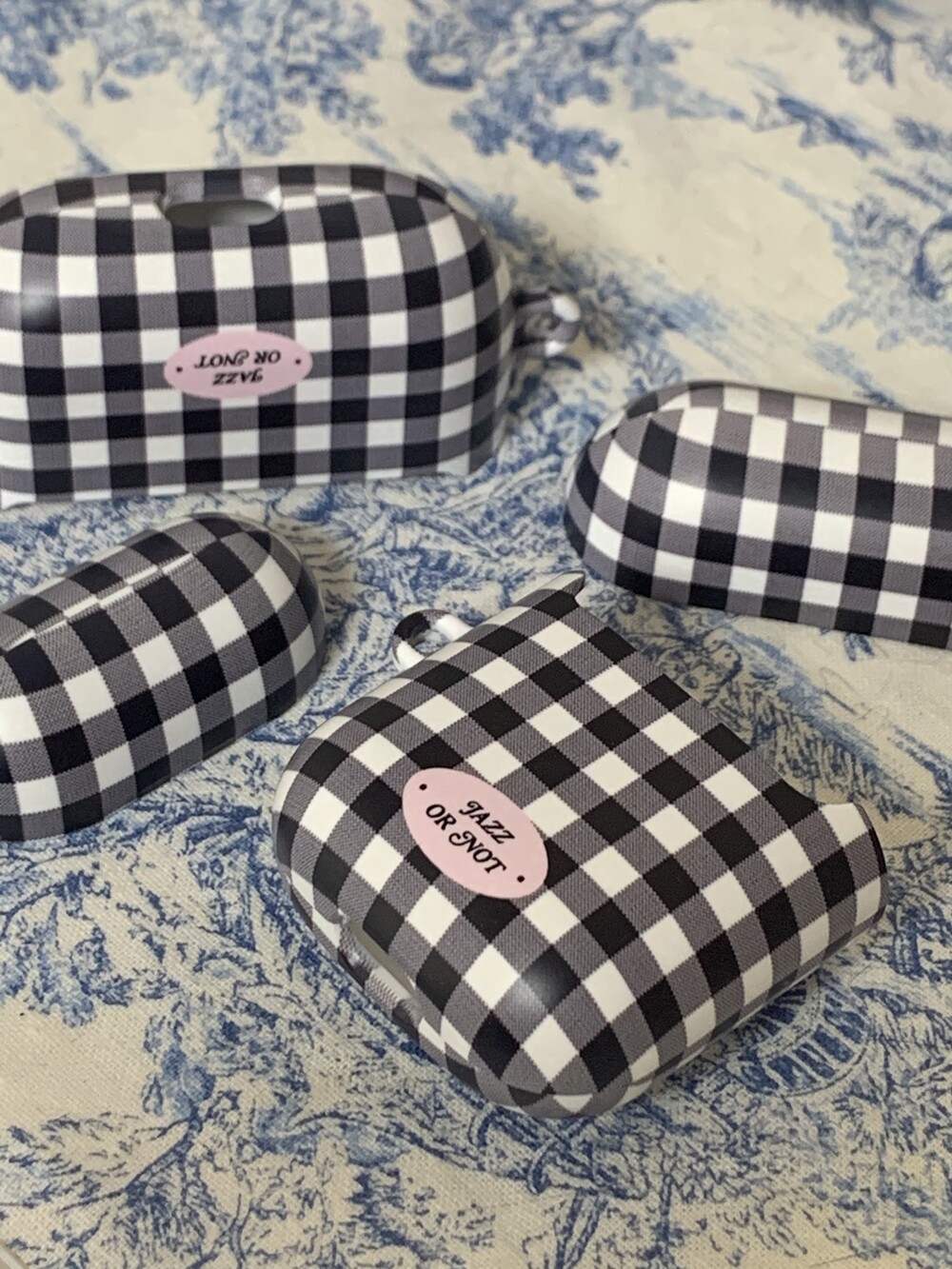 심플한 블랙 깅엄 체크 패턴과 베이비 핑크 컬러의 로고가 어우러져 한층 빈티지한 무드를 전합니다. 폴리카보네이트 소재로 외부의 오염에 강합니다.
