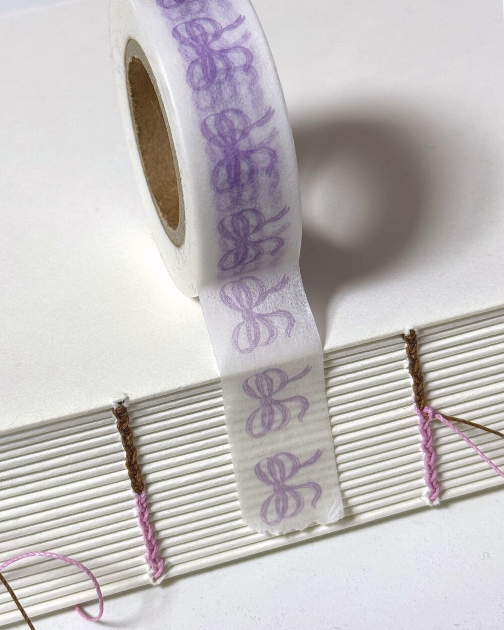 빈티지한 분위기의 Hand-drawn 리본이 반복되는 구성의 마스킹테이프입니다. 하나씩 잘라 사용하기에도 좋고 연결하여 포인트를 줄 수 있습니다.