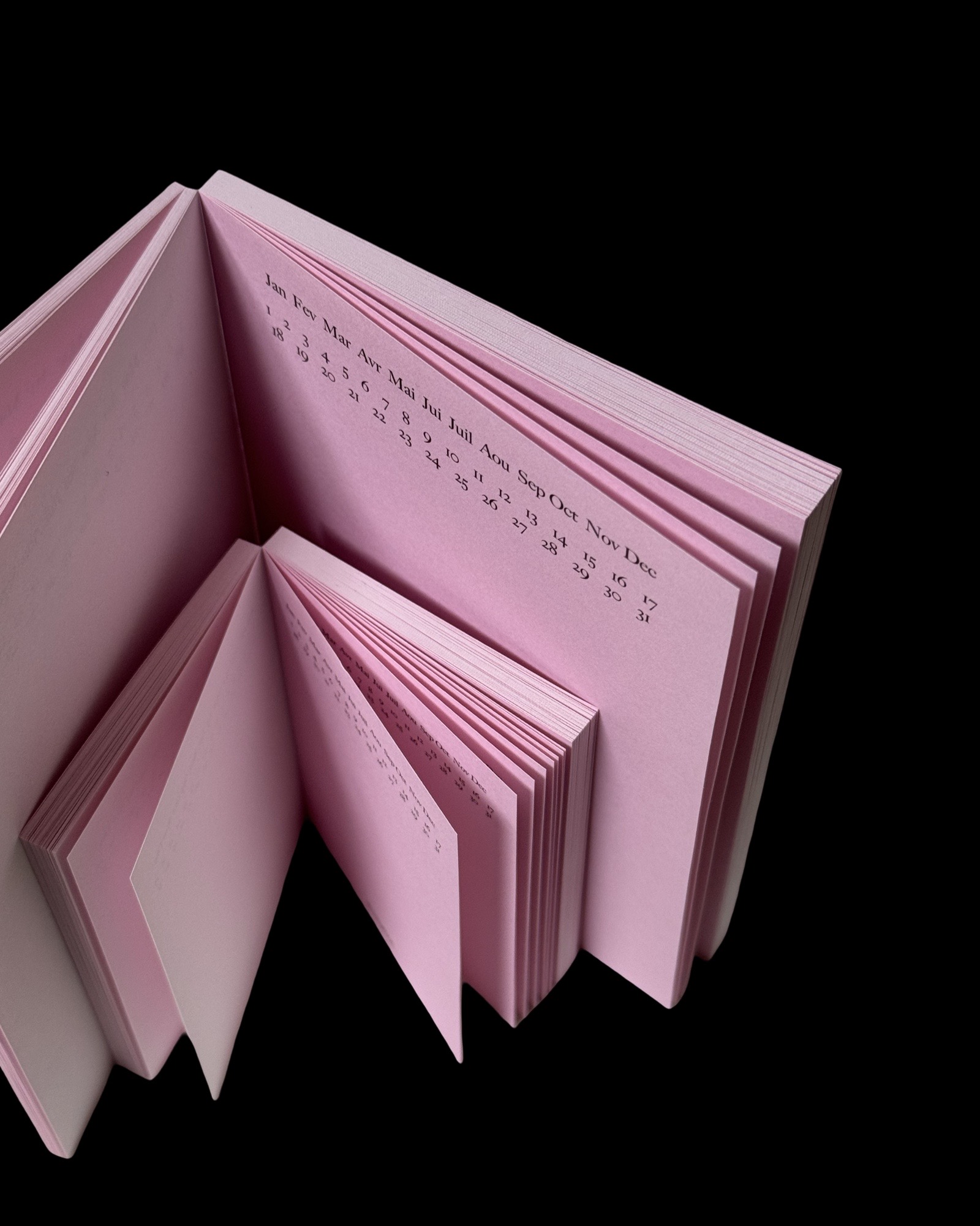 달과 날짜를 표시하여 그날의 에피소드나 메모를 기록할 수 있는 핑크색 메모패드