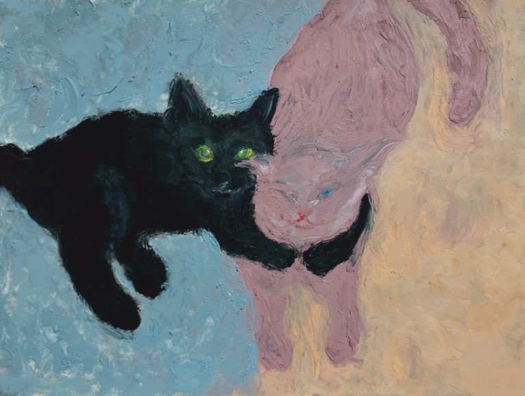 귀여운 고양이 두 마리가 장난을 치는 모습입니다. 고급스러운 오일파스텔의 색감과 질감이 잘 살아있고, 정형화되지 않은 규격에, 300g 이상의 두꺼운 고급 재질을 사용하였습니다. 일반적인 엽서의 약 두배 가량의 사이즈로, 엽서뿐만 아니라 인테리어용으로 활용하시는 것도 추천드립니다.